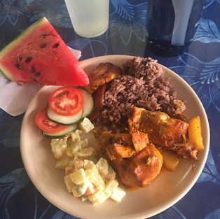 IT IS SOOOO GOOD!!! There are three ladies that work full time in the kitchen, and lemme tell you…it really is a full-time job. They prepare breakfast, lunch, and dinner for us every single day. Every meal has all the food groups included, and it is very healthy. For breakfast every morning, they serve biscuits, eggs, sausage, fruit, homemade yogurt and granola, and fresh squeezed juice. For lunch and dinner, they switch it up day to day, but some of the meals we have had so far include… chicken and rice, pasta with homemade sauce, and curry chicken with more rice. At every meal, there is always something sweet, which is right up my alley!! We had the best carrot cake with blueberries the other day, and I think it was the best carrot cake I have ever had. A really weird thing they do in Belize is put salt on their watermelon, and they also eat a salad with every meal. It is going to be a huge change when I go home and have no one to cook three meals a day for me.